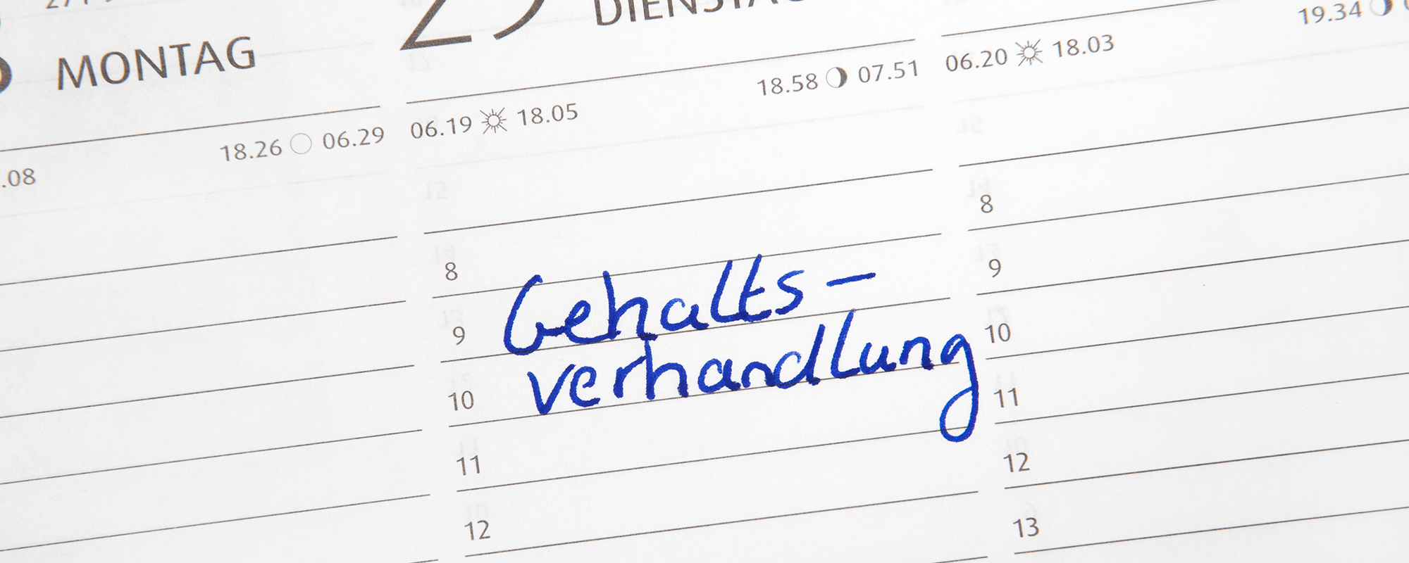 Tipp: Versuchen Sie, die Gehaltsverhandlung in einem günstigen Moment anzusprechen, z. B. nach erfolgreich abgeschlossenen Projekten oder positiven Leistungsbeurteilungen. Meiden Sie besonders stressige Zeiten im Betriebsjahr.